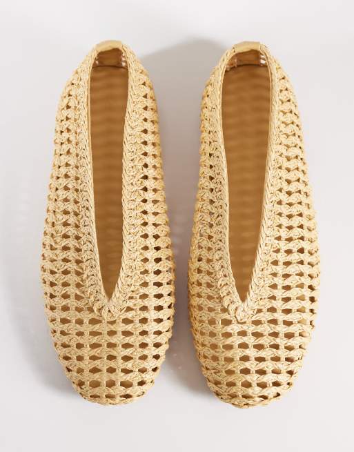 ASOS DESIGN Lioness woven ballet flats in natural