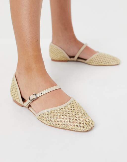ASOS DESIGN Lisa woven mary jane ballet flats in natural