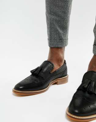 ASOS DESIGN loafers in black leather with natural sole and fringe detail