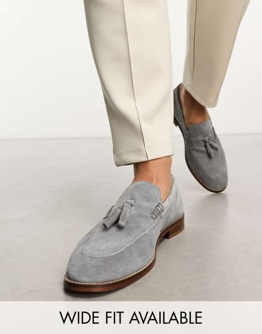 ASOS DESIGN loafers in dark gray suede with natural sole