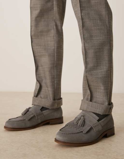 ASOS DESIGN loafers in gray suede with fringe and tassel detail