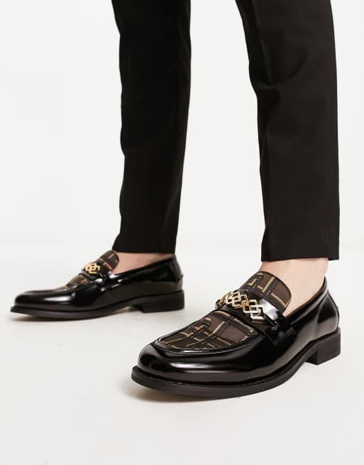 ASOS DESIGN loafers with monogram detail in black faux leather
