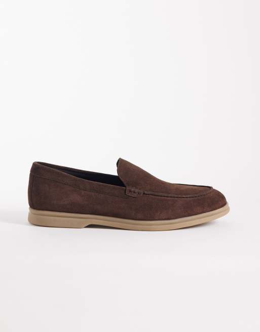 ASOS DESIGN loafers with rubber sole in brown suede