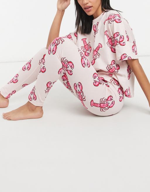 ASOS DESIGN lobster print tee & legging pajama set in pink & red