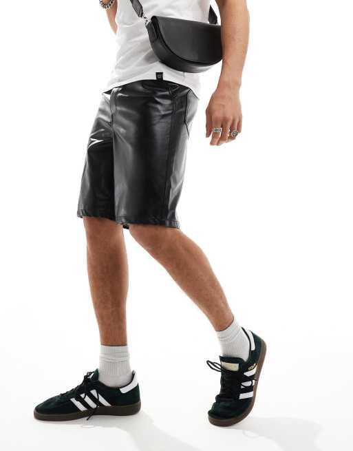 ASOS DESIGN long length faux leather shorts in black
