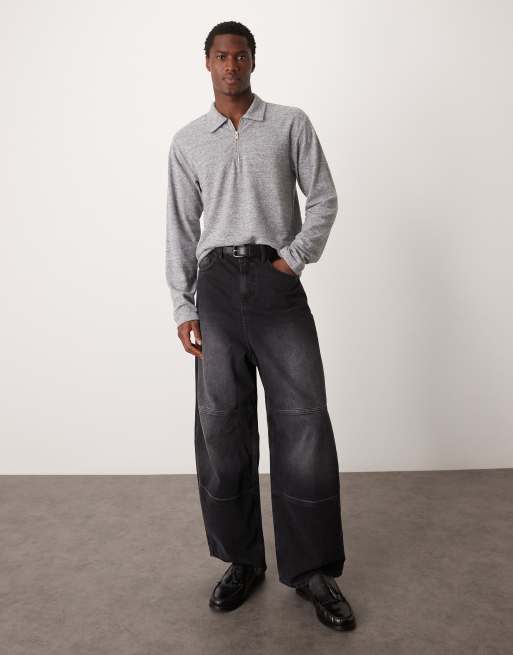 ASOS DESIGN long sleeve brushed rib polo with zip in gray heather
