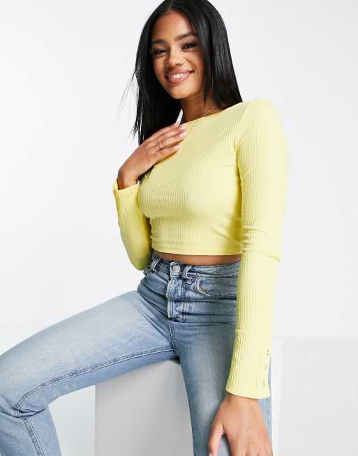 ASOS DESIGN long sleeve crop top with snap cuff in lemon