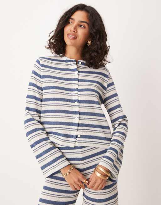 ASOS DESIGN long sleeve cut and sew stripe through top in ivory and blue - part of a set