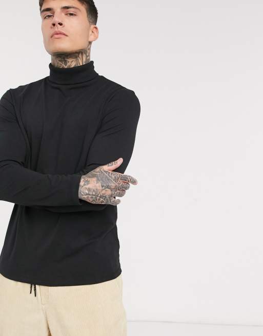 ASOS DESIGN long sleeve jersey roll neck in black