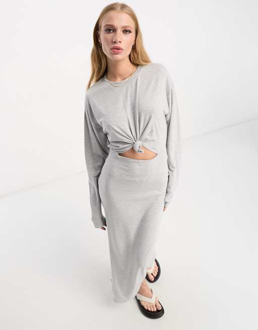 ASOS DESIGN long sleeve midi sweats dress with knot in gray