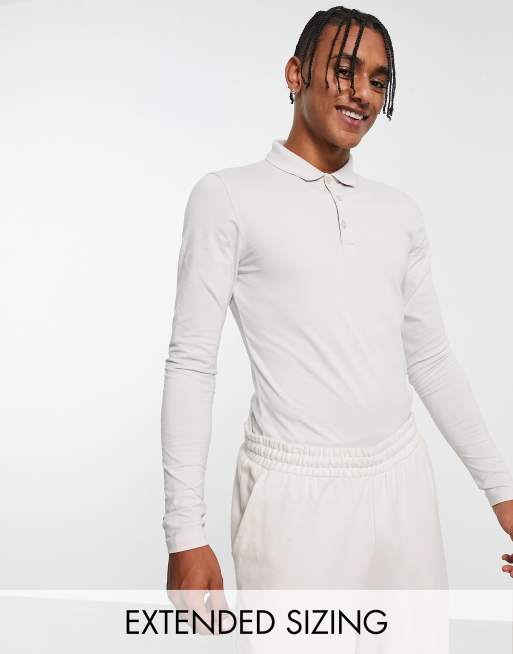 ASOS DESIGN long sleeve muscle fit jersey polo in off white