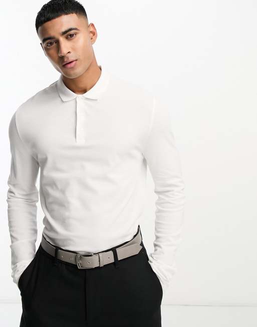 ASOS DESIGN long sleeve pique polo in white