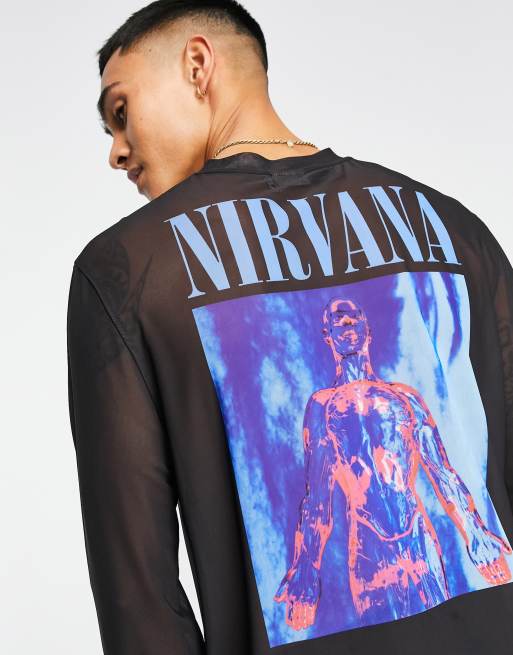 ASOS DESIGN long sleeve T-shirt in power mesh with Nirvana print