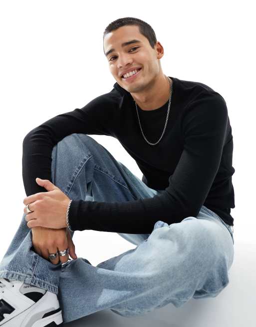 ASOS DESIGN long sleeved rib crew neck t-shirt in black