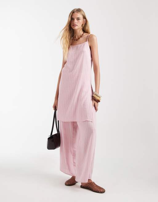 ASOS DESIGN longline crinkle cami top with split in pink stripe - part of a set