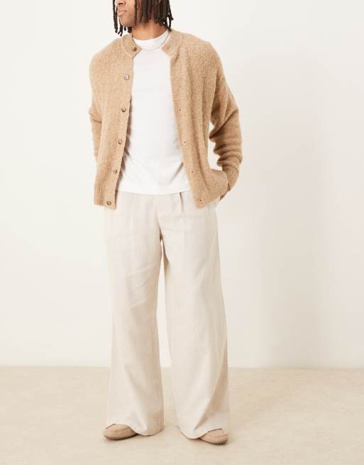 ASOS DESIGN loose fit dress pants with wide waistband and linen blend in neutral