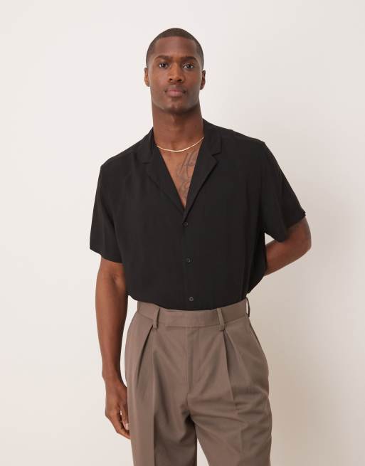 ASOS DESIGN loose fit viscose shirt with deep camp collar in black