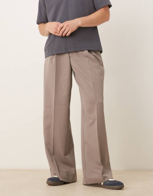 ASOS DESIGN loose leg dress pants with front pleats in brown