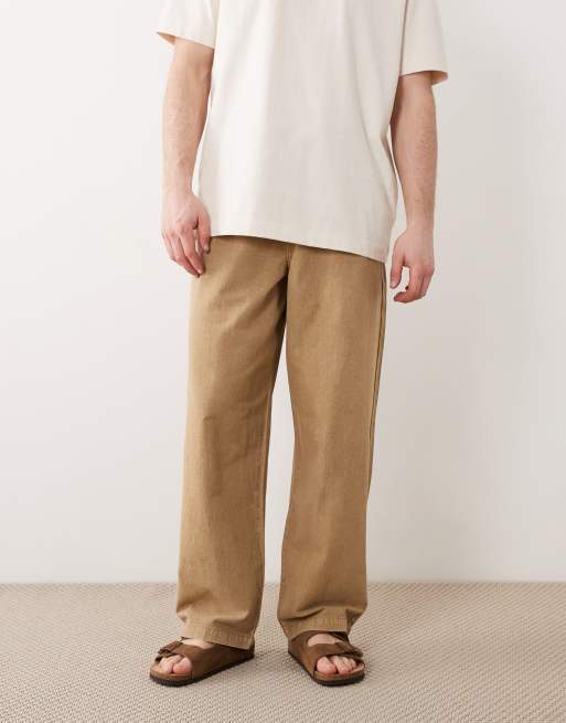 ASOS DESIGN loose straight fit textured pants in beige