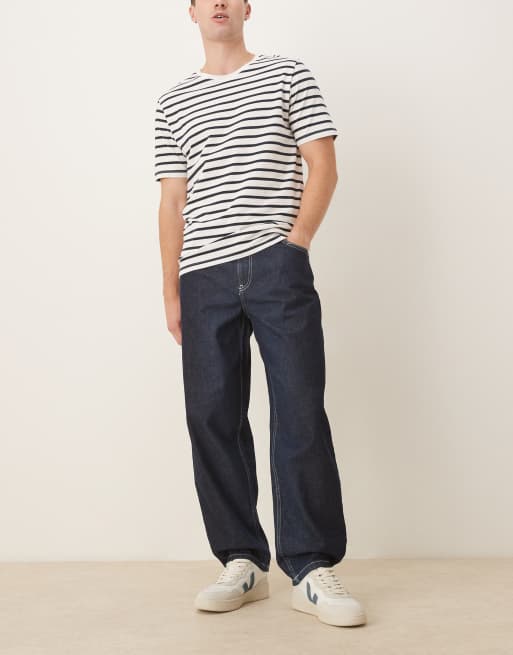 ASOS DESIGN loose straight jeans in indigo with ecru topstitch - part of a set