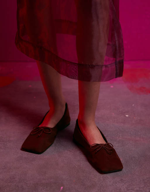 ASOS DESIGN Lotus premium leather ballet flats in burgundy suede