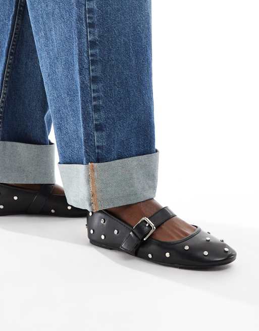 ASOS DESIGN Lou studded Mary Jane ballet flats in black