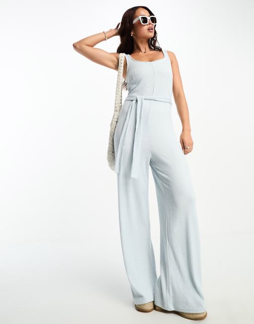 ASOS DESIGN lounge super soft ribbed square neck jumpsuit in blue