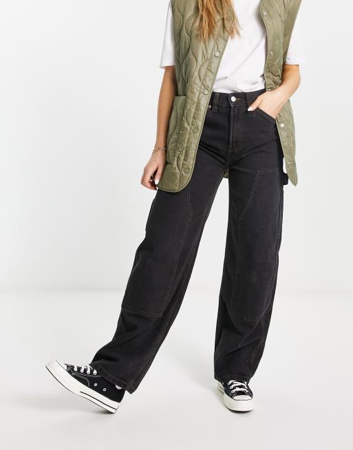 ASOS DESIGN low rise baggy jeans with knee patches in washed black