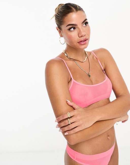 ASOS DESIGN Maddy clean mesh soft bra in neon pink