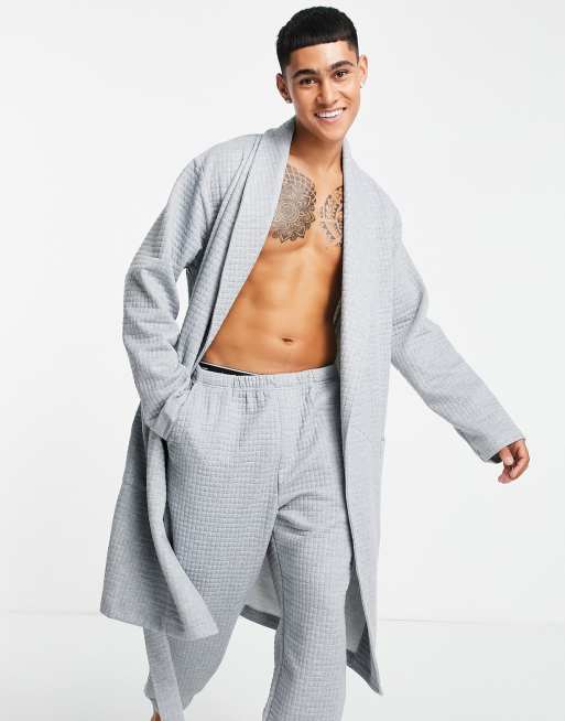 ASOS DESIGN matching quilted robe in gray