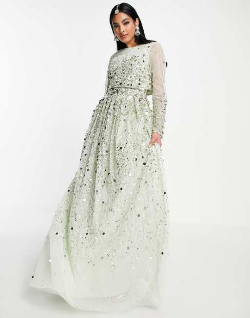 ASOS DESIGN maxi anarkali dress in scatter sequin in soft green