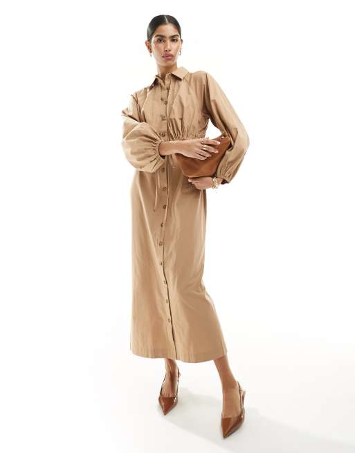 ASOS DESIGN maxi shirt dress with trench detailing in tan