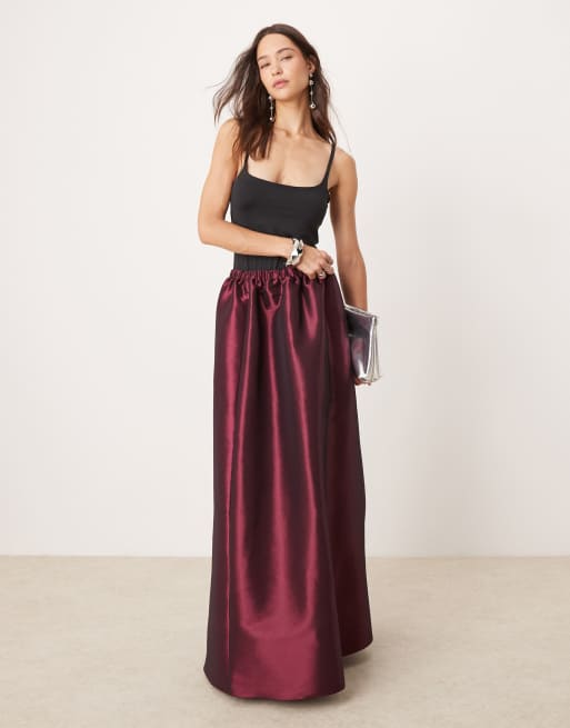 ASOS DESIGN maxi skirt in burgundy taffeta