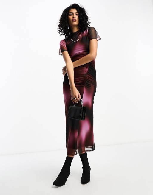 ASOS DESIGN mesh asymmetric neckline and ruched seams midi dress in black