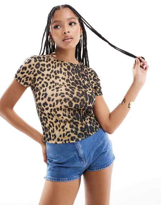 ASOS DESIGN mesh baby tee in leopard print