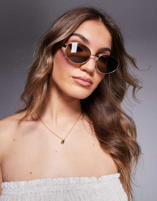 ASOS DESIGN metal oval sunglasses in gold with tort arms