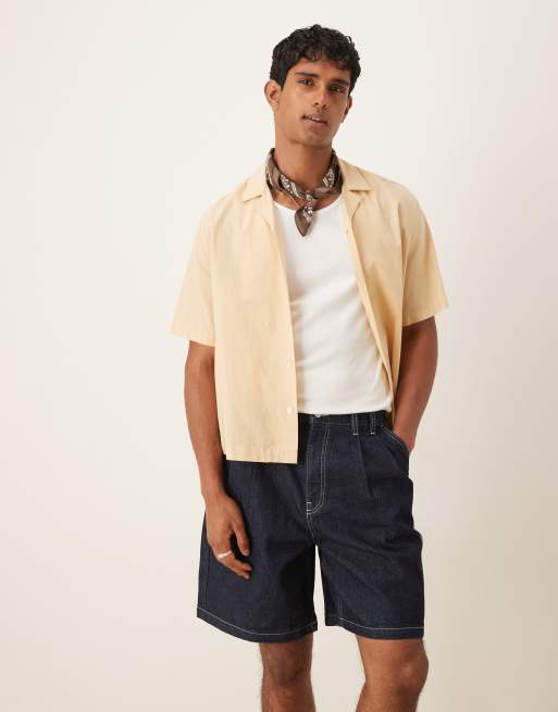 ASOS DESIGN mid length denim jorts with double pleats in raw wash