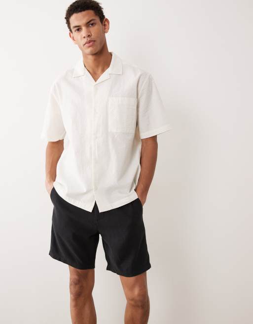 ASOS DESIGN mid length slim linen blend shorts in black
