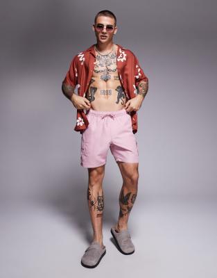 ASOS DESIGN mid length swim shorts with cargo pockets in pink