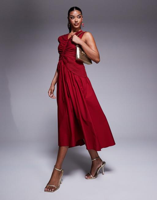 ASOS DESIGN midi dress with ruched bodice and center channel detail in red