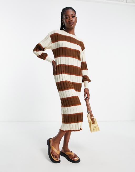 ASOS DESIGN midi sweater dress in brown tonal stripe