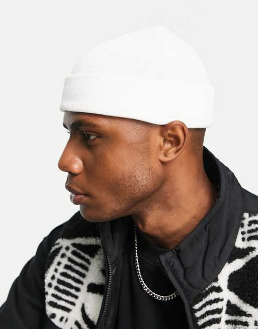 ASOS DESIGN mini fisherman ribbed beanie in white