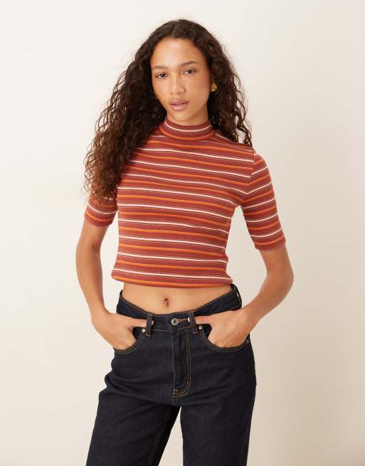 ASOS DESIGN mini ribbed high neck top with half sleeve detailing in red