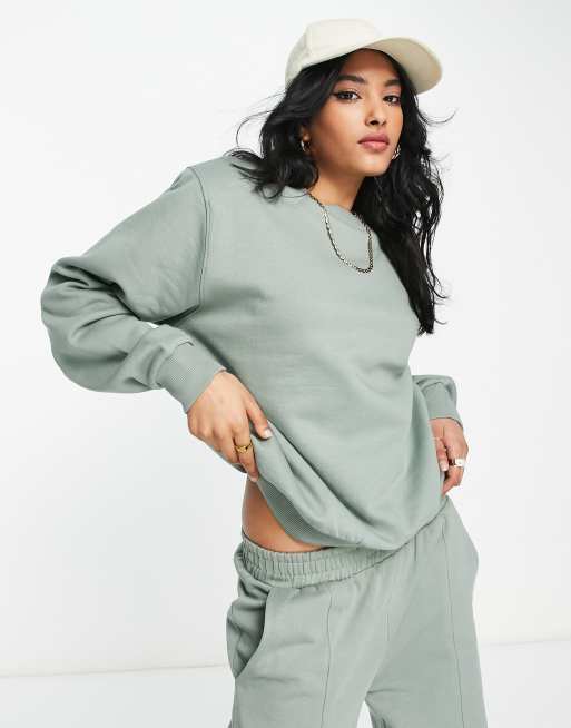 ASOS DESIGN minimal oversized sweatshirt with shoulder pad in moss green