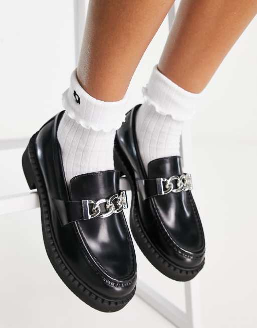 ASOS DESIGN Miso leather chunky chain loafers in black