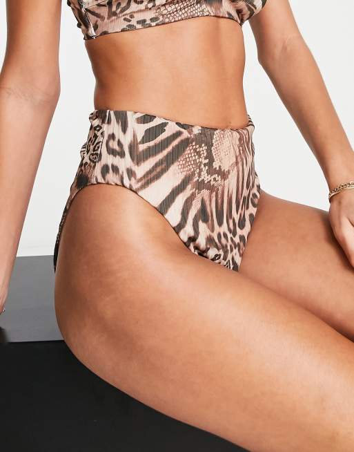 ASOS DESIGN mix and match rib high leg high waist bottom in leopard animal print