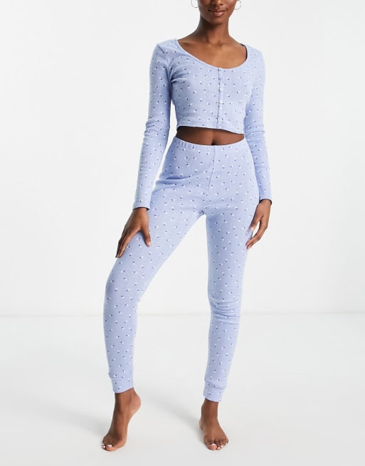 ASOS DESIGN mix & match floral pointelle pajama set in blue