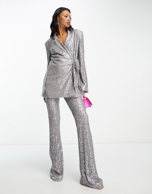 ASOS DESIGN Mix & Match jersey sequin suit in gunmetal