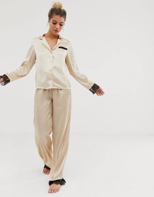 ASOS DESIGN mix & match lace & satin shirt & pants set