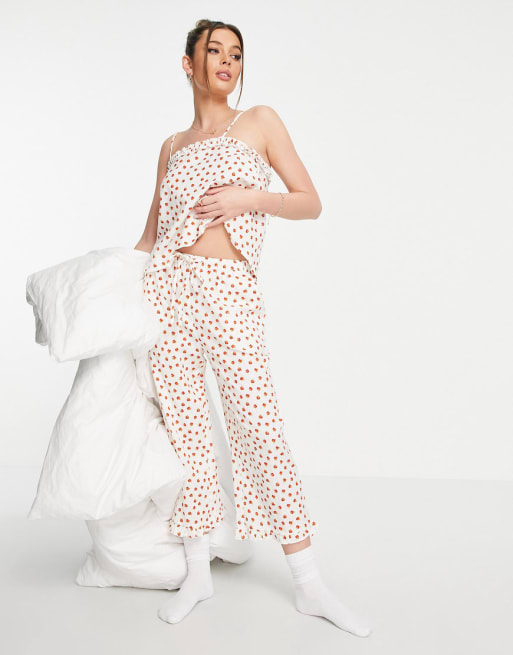 ASOS DESIGN mix & match linen floral pajama set in cream & red